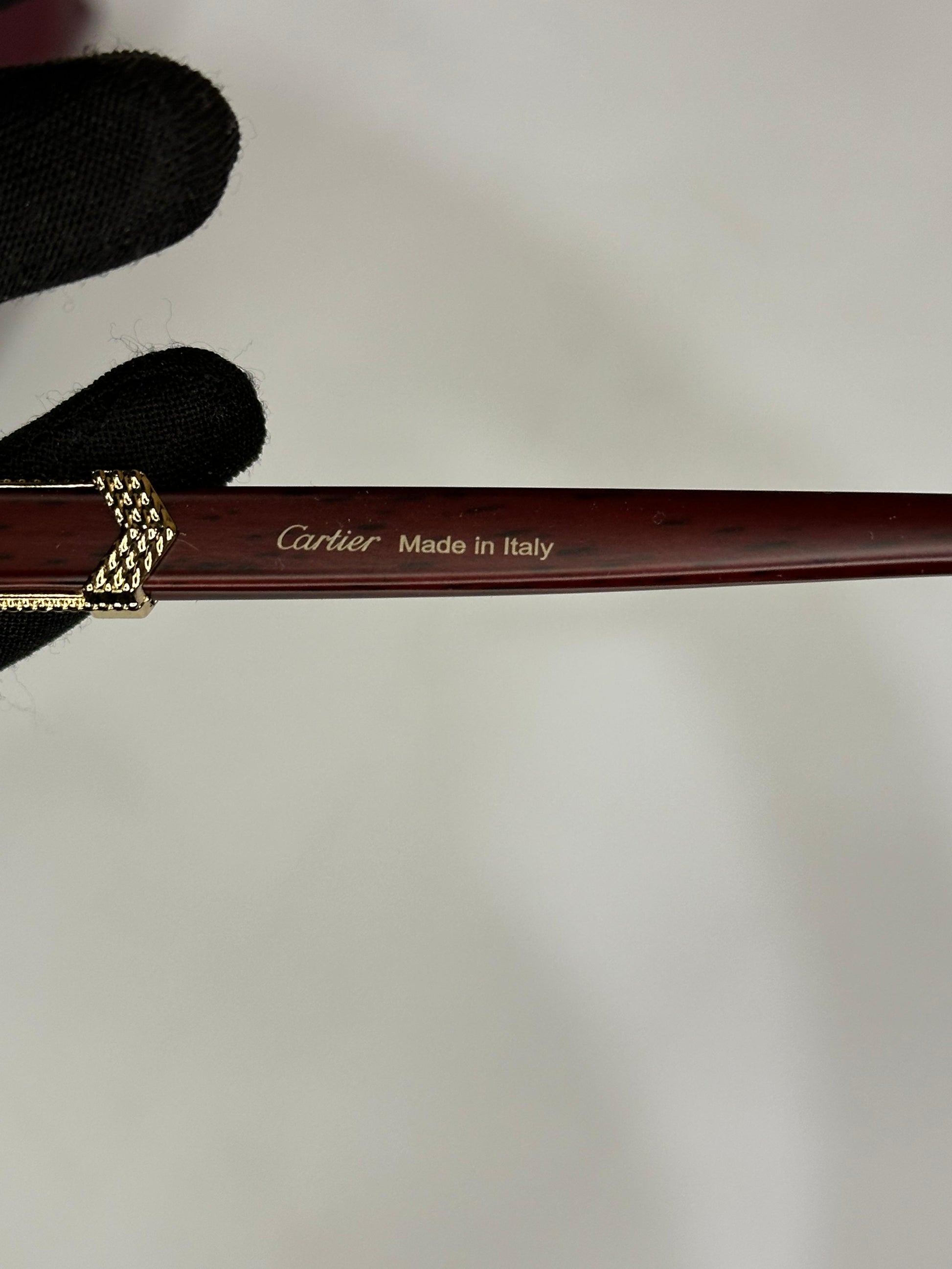 Each frame is meticulously handcrafted in France, showcasing Cartier’s signature savoir-faire and attention to detail. Polished metal accents, engraved Cartier insignia, and refined geometry lend a sense of understated sophistication, while the lightweight construction ensures exceptional comfort throughout the day.